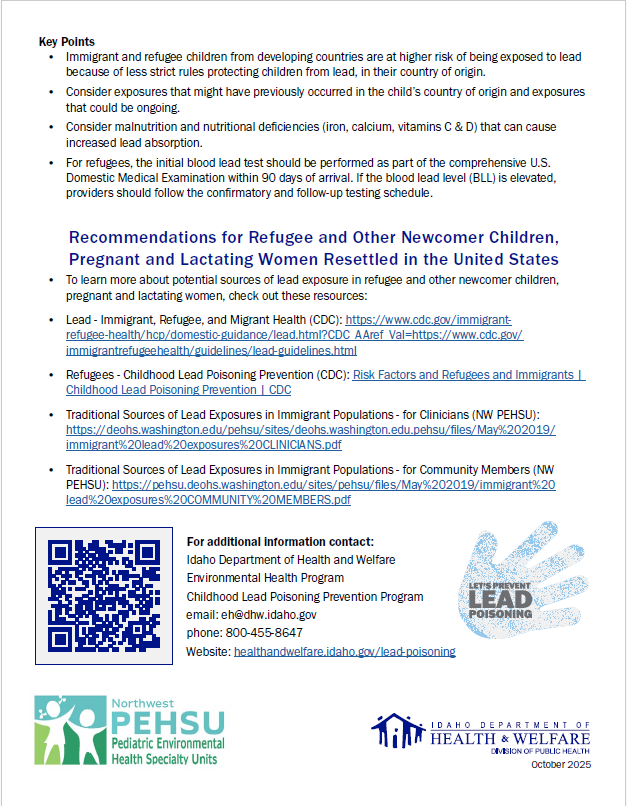 - Idaho Lead Testing and Follow-up for Immigrants and Refugees